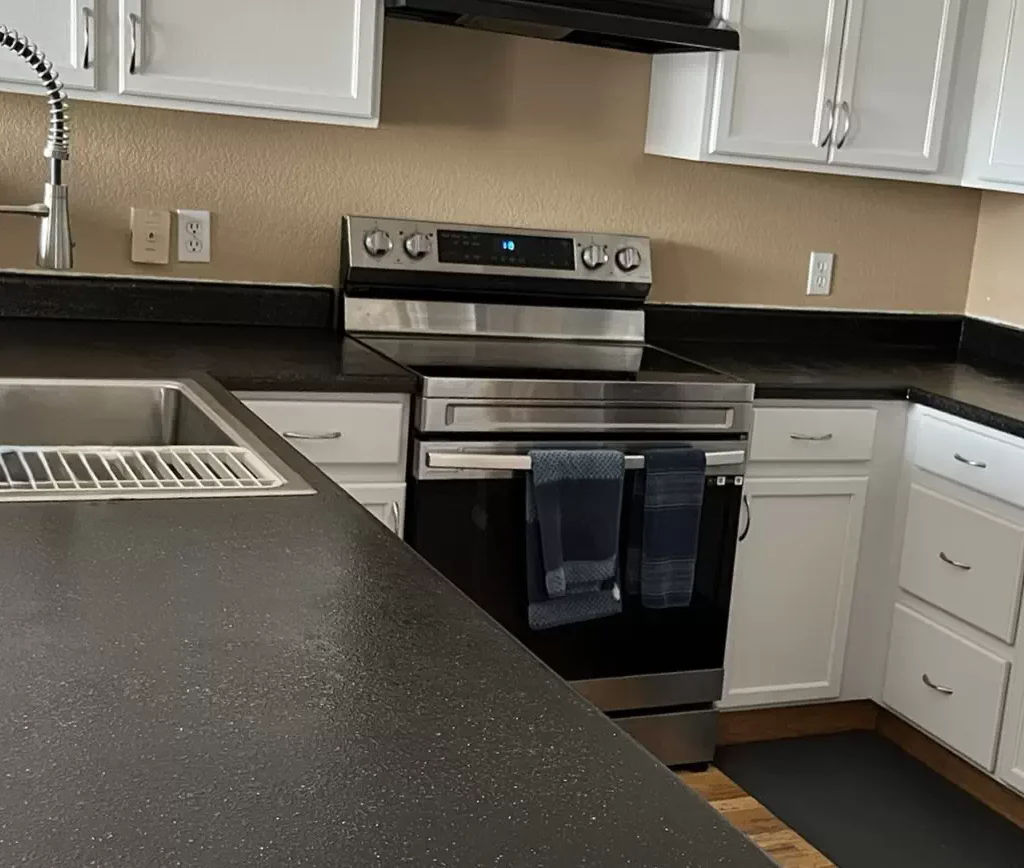Curtis launched his countertop solutions search in 2023, when he and his wife could no longer stand the heat- and water-damaged areas of the surfaces in their kitchen. They investigated granite, quartz and Formica replacements, but found them cost prohibitive. Looking for an alternative, they discovered Daich Coatings products.