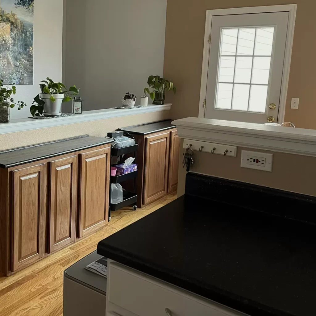 “I had never heard of re-surfacing Formica countertops and was fairly skeptical of the outcome,” says Curtis. “However, the product didn’t cost much, and I’m a DIYer, so I thought we’d give it a try.