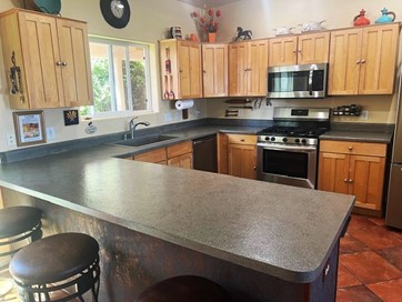 Project #1: Marjorie Walrath of Siera Vista, Arizona – Lodestone color. “After two years, I am still VERY happy with my countertops. They completely changed the look of my kitchen, which had old, worn out, bright red laminate tops.