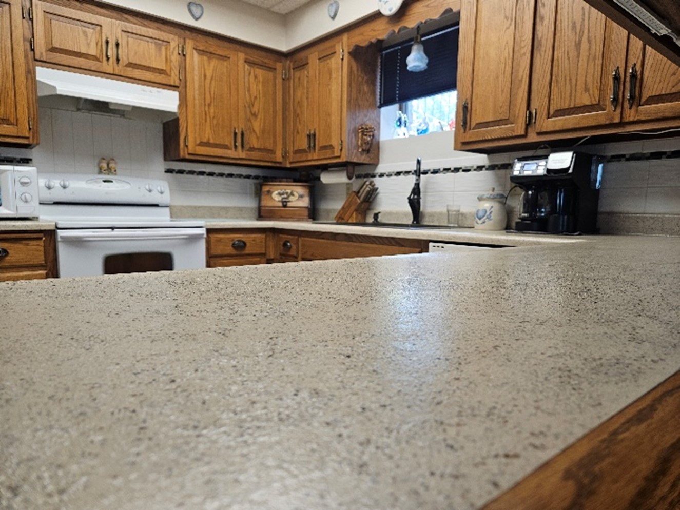 Project #2: Donna Murphy of Star Prairie, Wisconsin – Oyster color. “I love my countertops. The finish is quite tough and I have not had any problems with them. It was easy to apply and fun to do!”