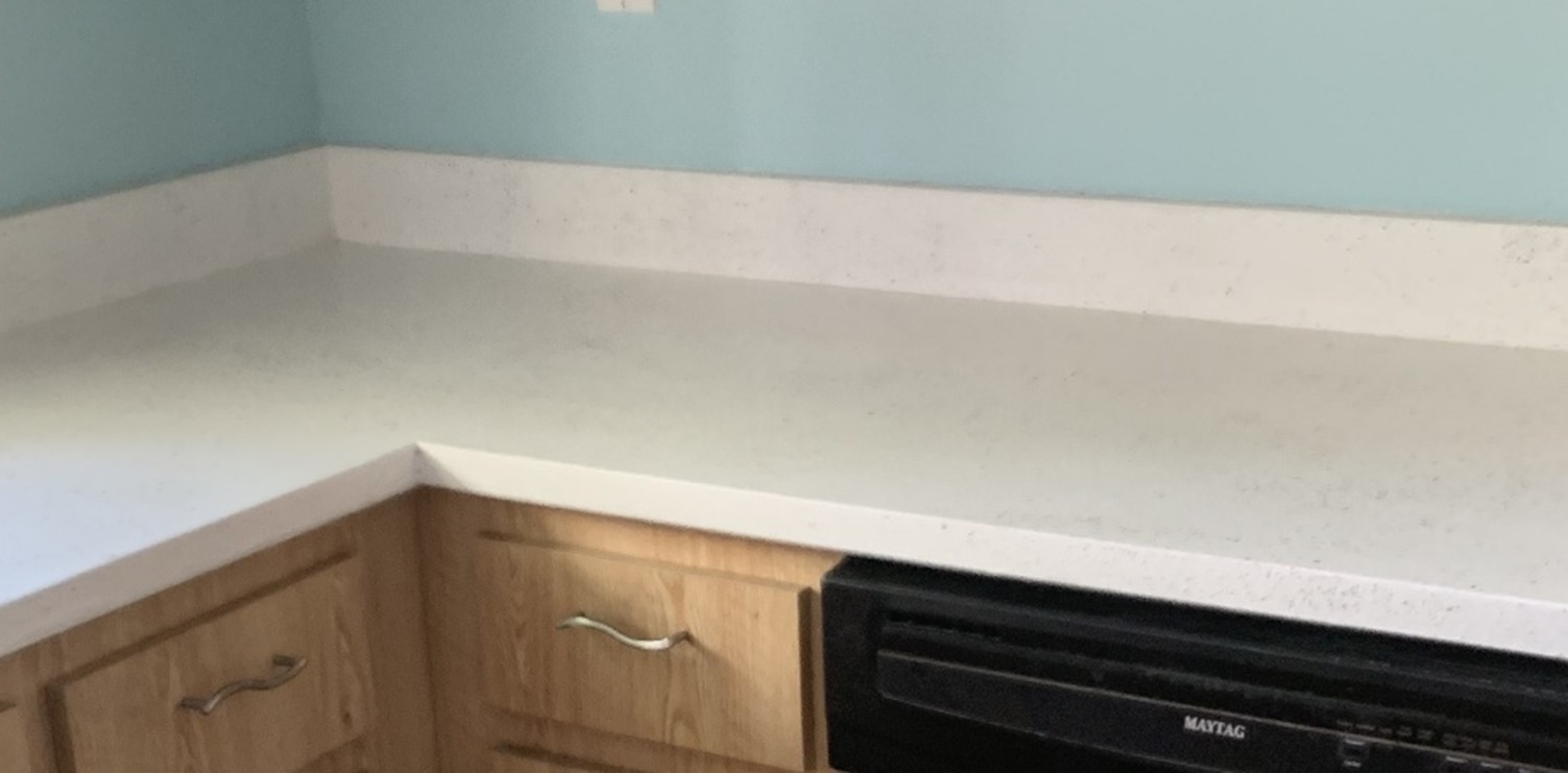 Project #3: Mary Lynn Van Eman of New Castle, Pennsylvania – Natural White color. “I’m extremely happy with the performance and outcome of how they turned out. The finish is professional and durable after over a year of daily use. Very outstanding product. I used this product on my Corian® countertops, and went from an odd shade of green to the Natural White. Can’t say enough … I’m very pleased.”